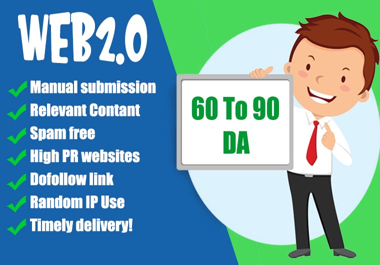 Do you want to boost your website ranking with Powerful Web 2.0 Backlinks I will create 100 Premium Web 2.0 Backlinks with High DA amp PA 6080+ to improve your Google ran...