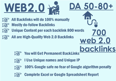 500+ Web 2.0 Backlinks unique domain high quality permanent manual link building About my ServiceWeb 2.0 Powerful Backlinks are very important for your website to rank in...