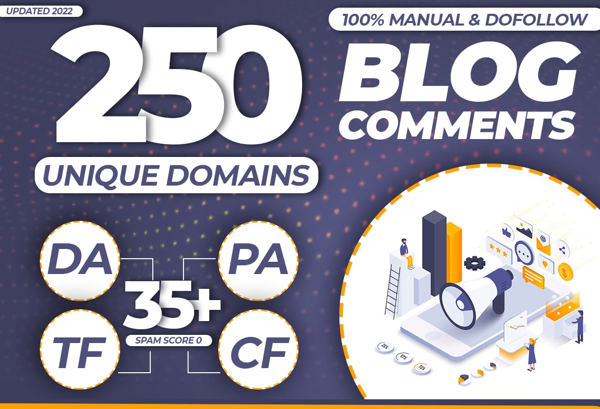 MANUALLY 200 High Quality Dofollow Blog Comments SEO Backlinks on High DA PA Sites. Manual Dofollow Blog Commenting backlinks is many trusted and effective link building ...
