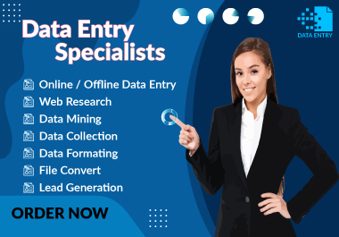 Looking for a reliable and detailoriented data entry specialistYoure in the right placeI will help you with any kind of data entry work with 100 accuracy and fast deliver...