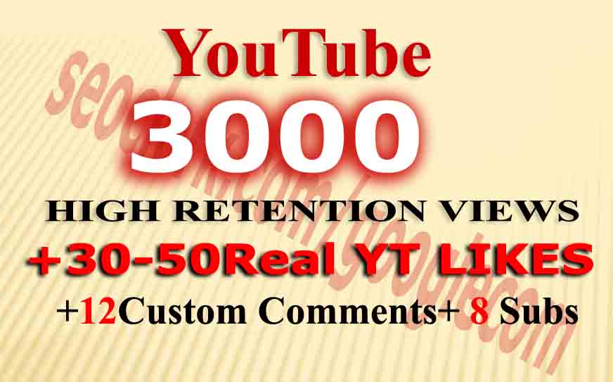 Hi,300+ Real HQ Permanent YouTube Subscribers 9. OR, Mix 4000+ YouTube Views, 200+ Like, 3+ Comments amp 3+ Subscribers Fast Just for 9. OR, 1000+ Real YouTube Video like...