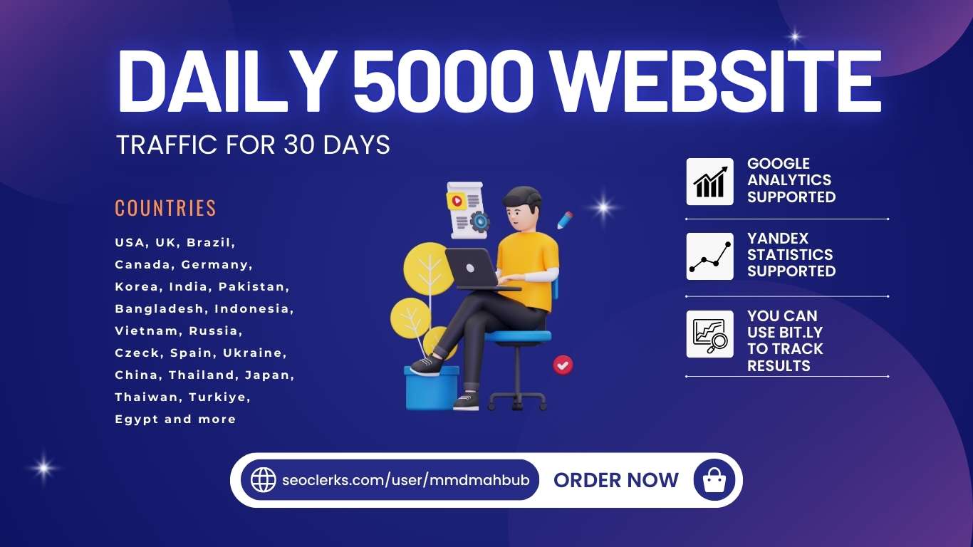 7500+ Long stay time keyword Website visits BOOST YOUR RANKING AND VISIBILITYeven better in year 2025Google exact keyword SEO service Very effective trafficMinimum stay t...