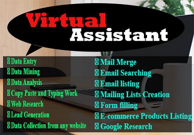 Hey there,If you are looking for a Data Entry amp Virtual Assistant for your business or personal project, then you are in right placeMy Services in below Data Entry Dat...