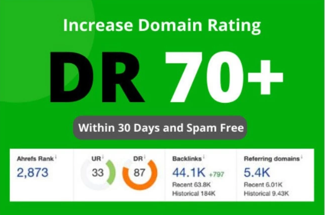I Will Increase DR, Domain Rating, Ahrefs Dr 70 Plus For $54