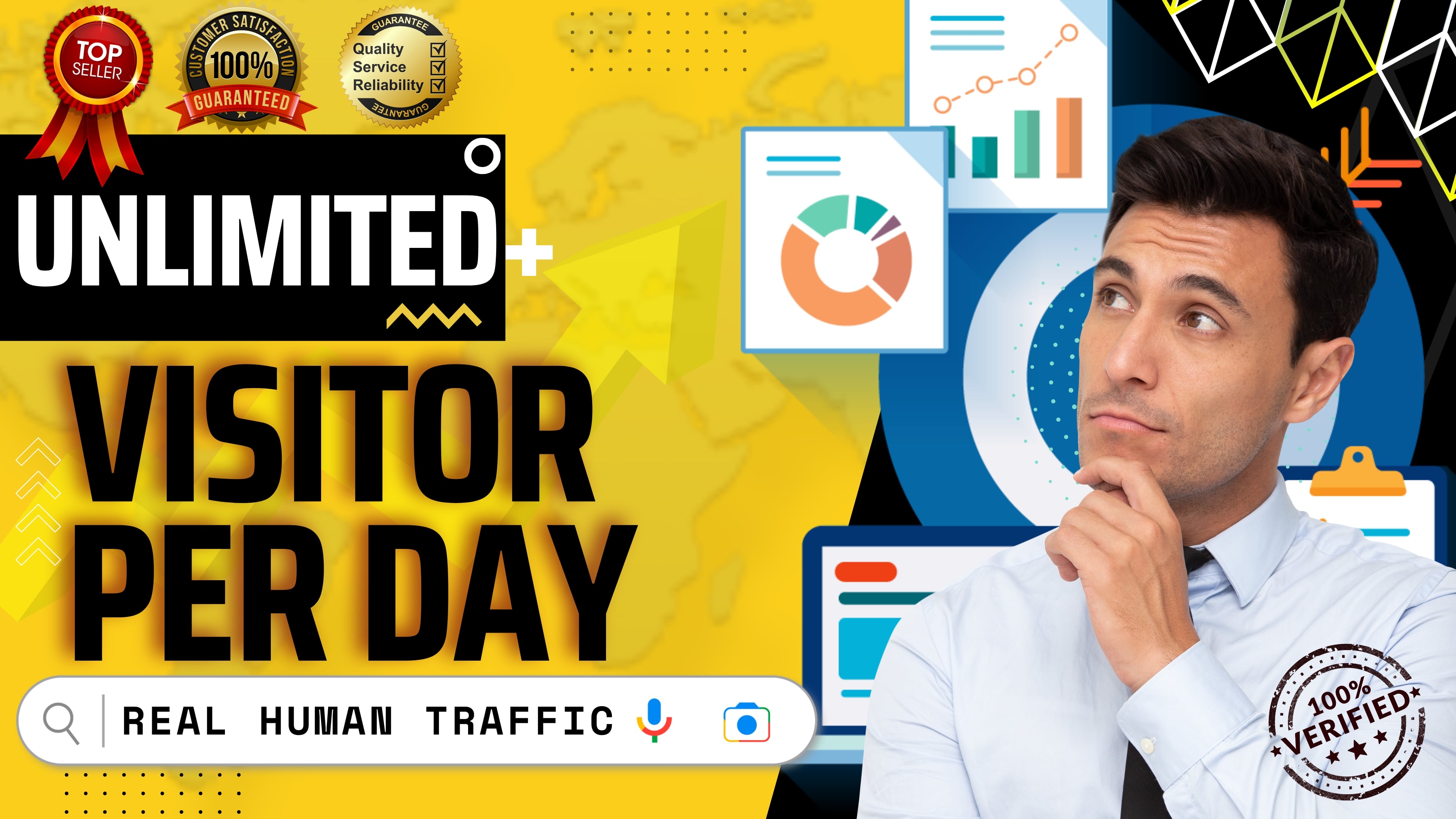 REAL HIGH QUALITY WEBSITE TRAFFIC SATISFACTION GUARANTEED MONEY BACK TRACKING LINK PROVIDED TOO SHOWING REAL UNIQUE TRAFFIC ALL THE TIME up to 300 a day 200 300 VISITS to...