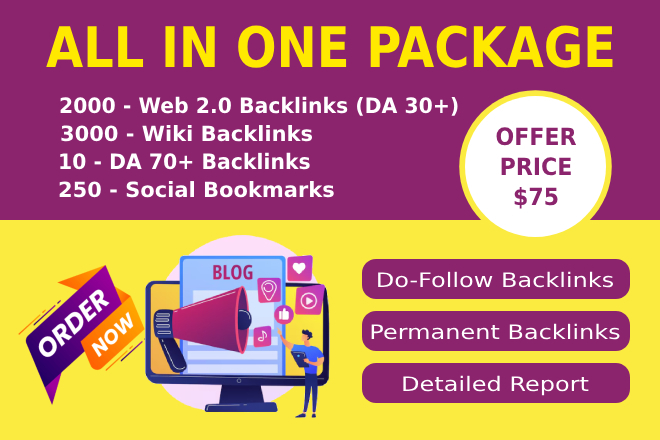 All In One profile, link wheel, directory, web2.0, video share, infographic, classified ad, article submission backlinksTry our best new service.We will provide all 1200 ...