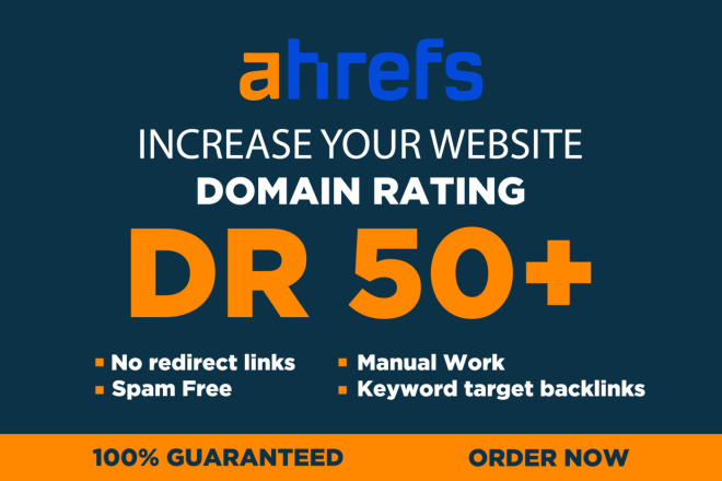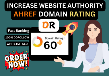 About this service, I will increase the domain rating Ahrefs DR 70 using high Authority dofollow SEO BacklinksI can help improve your websites Ahrefs Domain Rating by cre...
