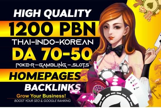 NICHE PREMIUM 50 DA50+ Indonesian. ID Pbns SLOT ,Casino, Gambling, Poker, Judi Related High DA links Get Awesome, InContent White Hat Links Th...