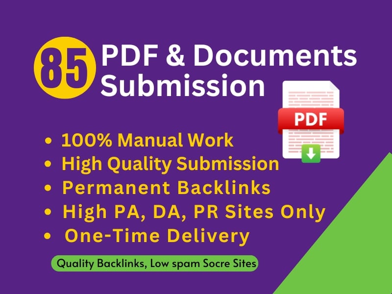 PDF submission 85 different unique sites low score permanent post perfect link building. PDF is one of the best powerful SEO backlink strategies to rank any website or UR...