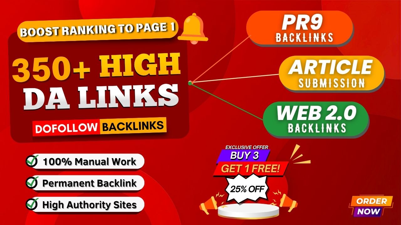 Exclusive Offer Get-100 Backlinks DA 40+ / +20 EDU DA 50+ Manually Do Safe SEO Rank On First Page For $4