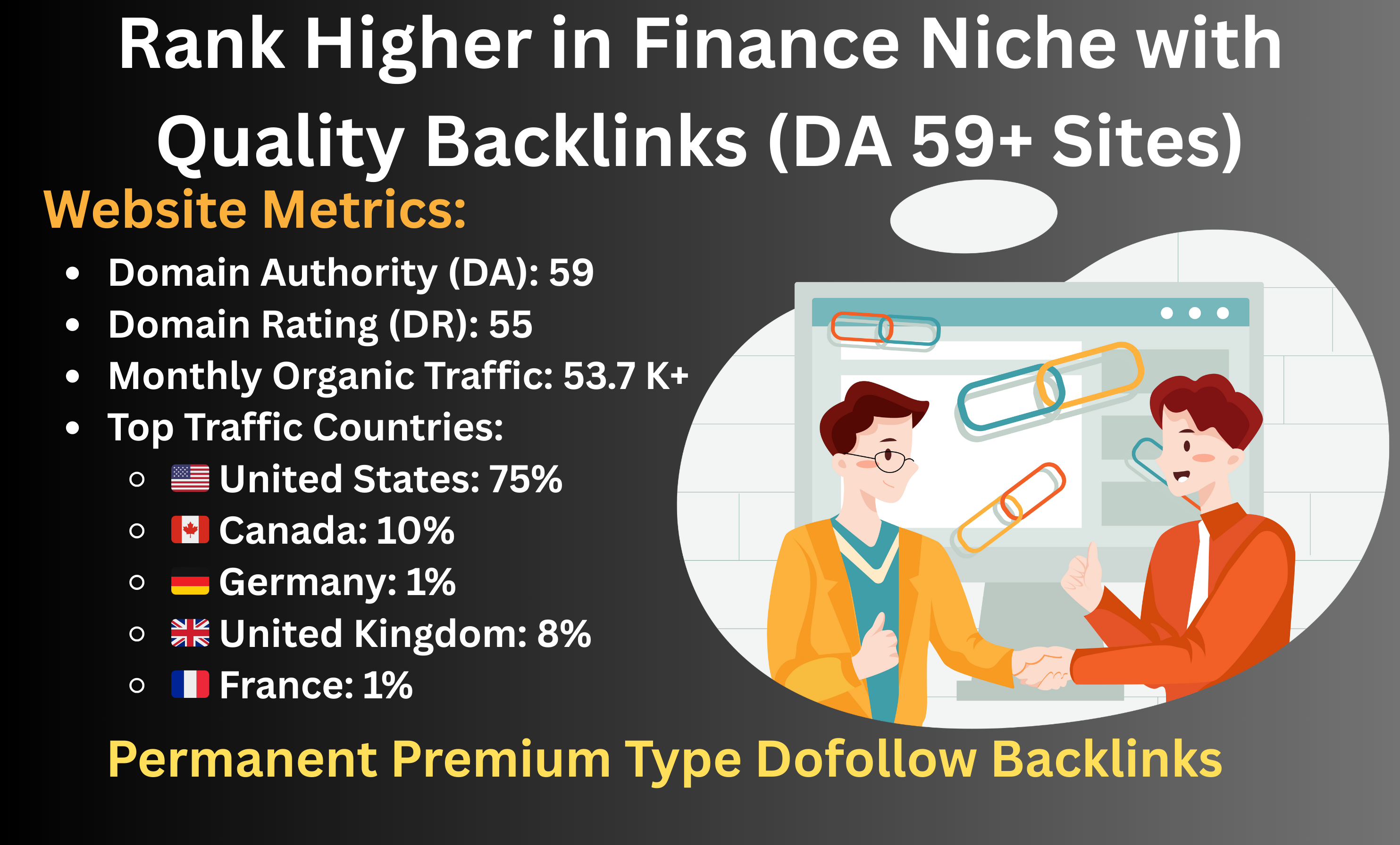 HIGH QUALITY 100 DA 50+ DR 30+ CONTEXTUAL DOFOLLOW PERMANENT BACKLINKSBoost Your Rankings with HighQuality Dofollow Diverse Contextual BacklinksLooking to improve your we...